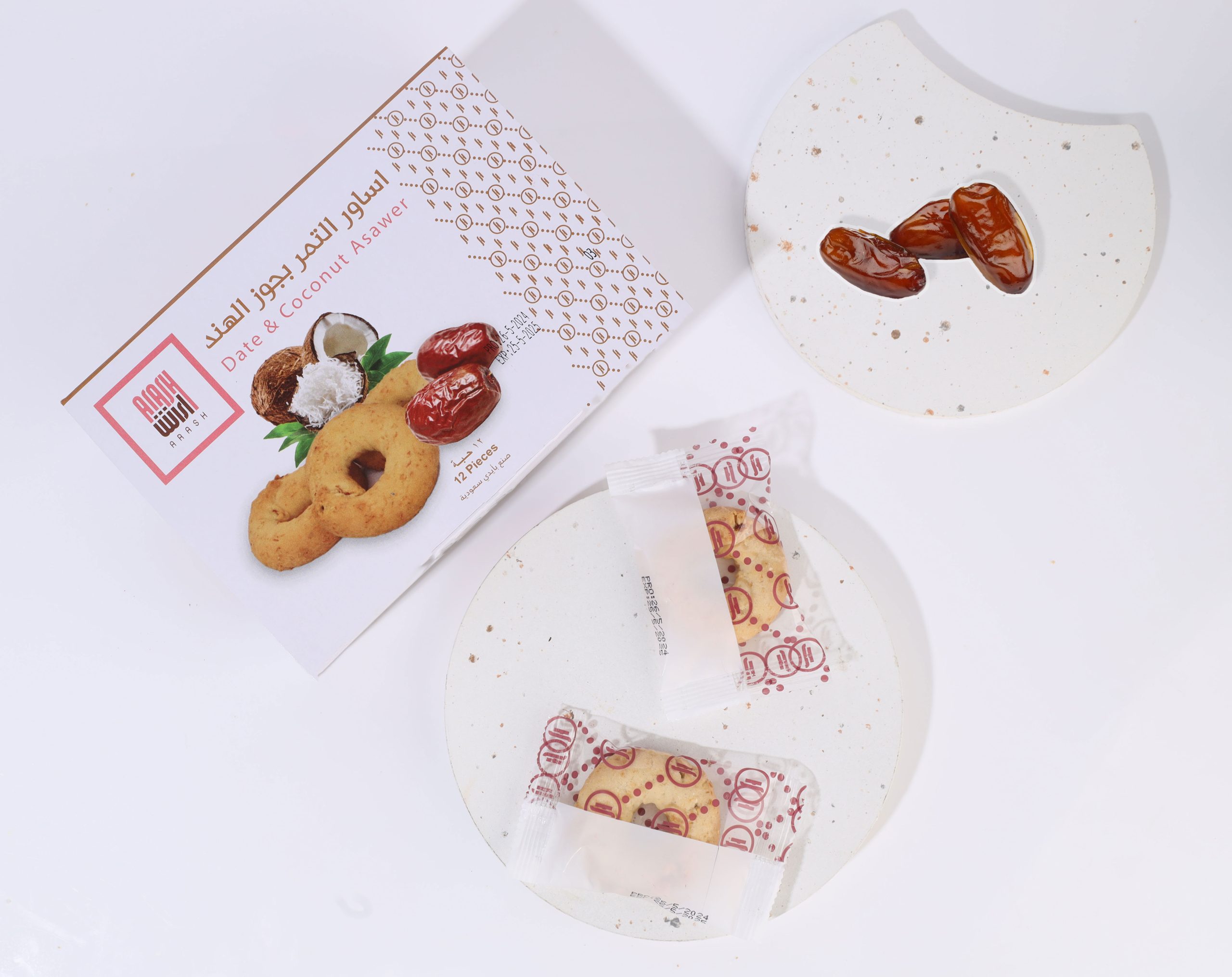 أساور التمر بجوز الهند محشوة بفاكهة التمر الطازجة و جوز الهند الرائع هي وجبة خفيفة شهية و غنية بحلى طبيعي. باكت : 12 قطعة شراء الآن
